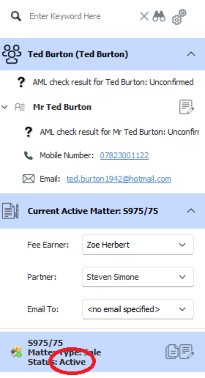 If the matter is on your system already as a quote (Prospective Client), load the matter and click the Edit Matter Button on the left of your screen