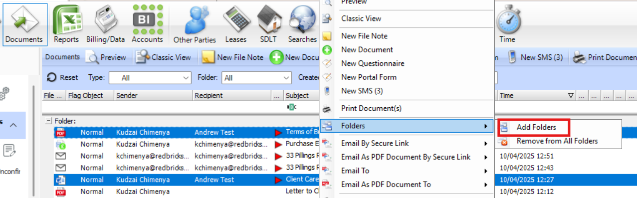 The Selected Documents will then be assigned to the relevant folder.