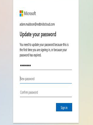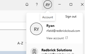 If you need to sign out of your existing/default account, click your initials in the top Right and sign out Enter your @redbrickcloud.com email address and password
