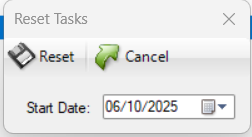 When you select 'reset tasks' you will asked to set a 'Start Date'. This is asking for you to set the date that the file started, so that the Target Dates of the tasks can be calculated. The date displayed will default to the date that the matter was originally opened in Redbrick, but if you are "Restarting" a file, you could set that to todays date.