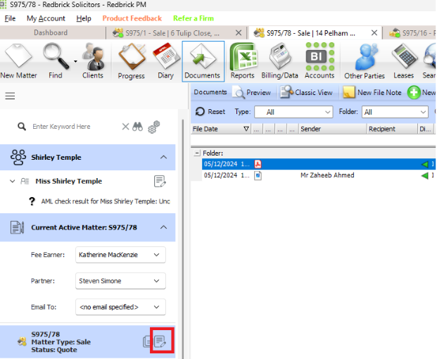Redbrick provides the ability to perform a Risk Factor Search at the beginning of a matter, which provides initial overview information on the property you’re transacting on. It will also by default download a OS plan showing the primary freehold title boundary, and add it to the document screen. The information is provided from the TM Group.