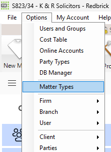 By default all reports in Redbrick PM are visible to all users. If you add any sensitive reports you may want to hide them from some of your users. To do this go to Options and Matter Types