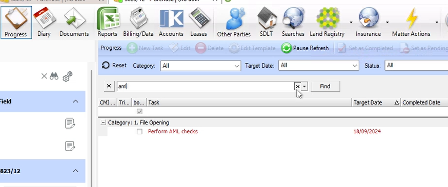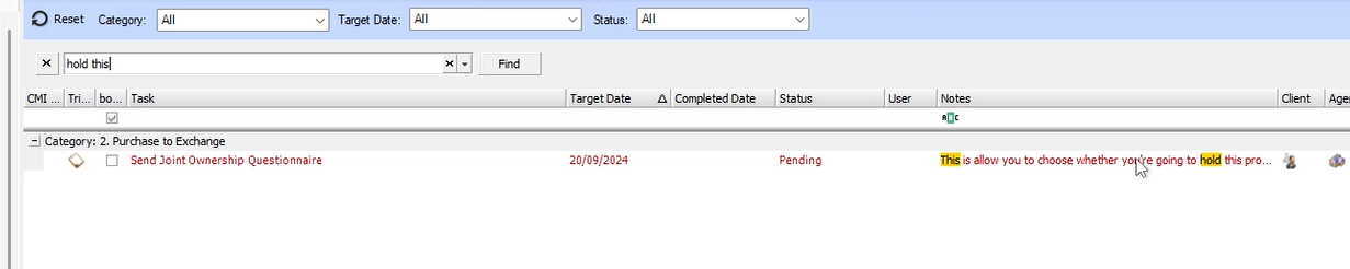 This find panel can also be used on the process screen to search for tasks, dates or task notes
