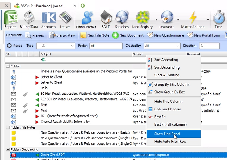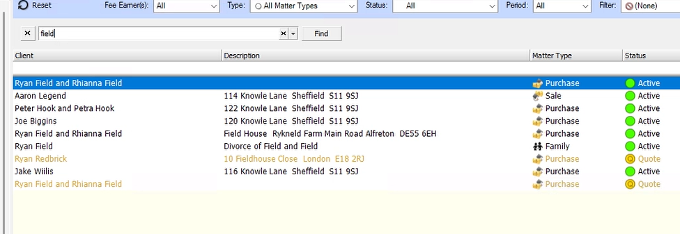Some firms prefer to have their find screen to default to a Report. This has less functionality than the full find screen (for example you cannot Link two matters from here, or Right Click and open the client details without opening the case). This ...