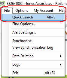 You can access the Quick Search area in two ways: by using the Alt+S key held down together, or by clicking on 'File' in the top left of your screen and selecting Quick Search.